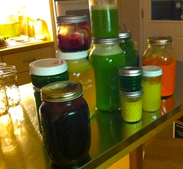 Here’s a photograph of our juicer set up for the session. I guess I should say our multiple juicer set up.