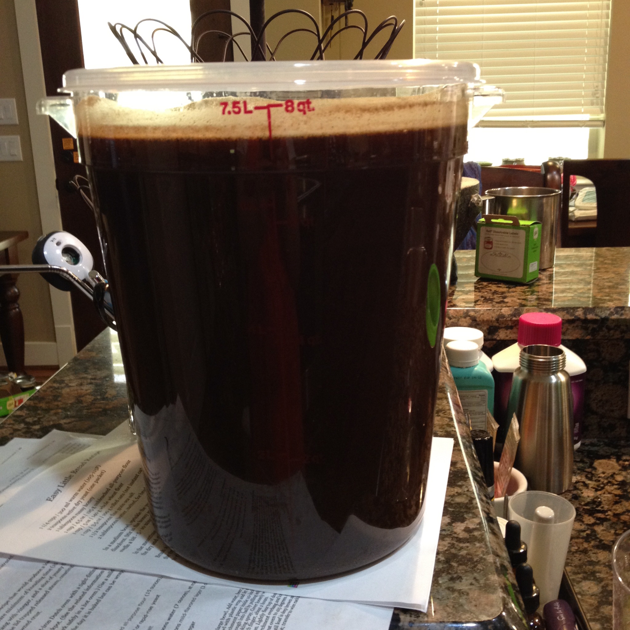 Make this easy “LAZY” coffee on your countertop over night. You already know I really dig these multi-day techniques. They make me feel so productive, as if I am multi-tasking all day and night. Here’s a good base recipe: 80z medium grind coffee for every gallon of water. Mix room temperature water and coffee. Let it sit for 24 hours. (at least 12) Filter the coffee twice through a metal sieve lined with cheese cloth. Store in the fridge for about 2-3 weeks. I made quite a large batch here. Mistakes were made. Just be patient and filter twice. You’ll probably change the strength of your brew to suit you after your first batch. SO just make some. After it’s chilled, get a big glass of ice and add milk, sugar and whatever you like. I like both. Oh yes!
